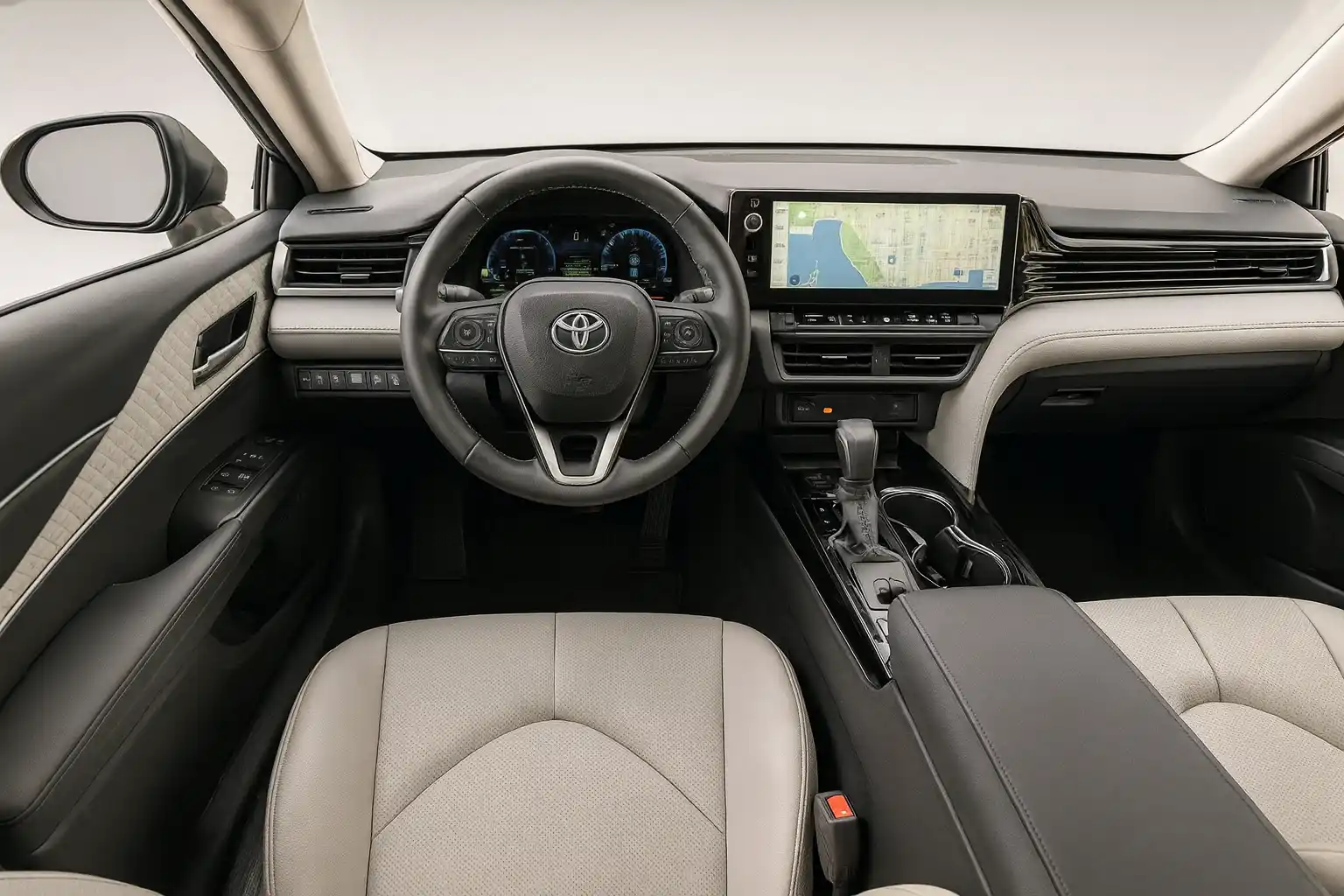 Yes. The latest Camry emphasizes fit-and-finish, soft-touch materials, and a calmer, ergonomic layout that reduces visual clutter. Seats balance cushioning with supportive bolstering for long stints, NVH is well controlled, and the cabin feels “big-car” spacious without bulk. Subtle design flourishes on the dash elevate perceived quality while keeping the midsize sedan’s everyday usability front and center.